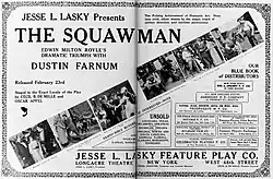 En 1913, peu de temps après avoir été convaincus par Samuel Goldwyn de tenter leur chance dans le cinéma[24],[25], Jesse L. Lasky et son associé, Cecil B. DeMille, proposent à Dustin Farnum, un acteur de théâtre reconnu[26], d'être la tête d'affiche d'un film qui durerait plus d'une heure[23]. Le film en question serait une adaptation d'une pièce à succès d'inspiration « westernienne » de 1905[1], The Squaw Man[5],[11],[27], écrite par Edwin Milton Royle dont Lasky a obtenu les droits d'adaptation pour le cinéma pour seulement 15 000 $[3],[25]. Cecil B. DeMille reprend ainsi un des succès de sa carrière théâtrale[28], tout comme Dustin Farnum, qui tenait déjà le rôle-titre dans la pièce[10] et qui accepte la proposition de Lasky et DeMille mais refuse de prendre 25 % des parts de la société nouvellement créée, la Jesse L. Lasky Feature Play Company, préférant la somme fixe de 5 000 $[3],[26]. L'avenir de la société démontrera qu'il aurait gagné beaucoup plus d'argent avec le premier contrat proposé par Lasky et DeMille.