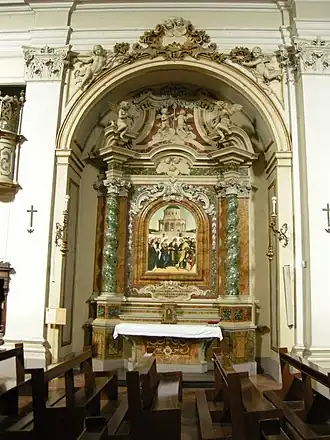 - ↑ Les dimensions du retable et les rapports entre les parties internes du tableau, structurées selon une composition très précise, répondent aux principes d'harmonie fruits de l'application de processus scientifiques et mathématiques des schémas idéaux tracés par Leon Battista Alberti (De re aedificatoria, livre VII, 1485)