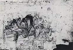 La Galerie Tretiakov conserve également des aquarelles représentant le petit garçon du strelets qui se tient devant la femme[65],[139].