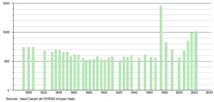 - ↑ Fiches Insee - Populations de référence de la commune pour les années 2006, 2007, 2008, 2009, 2010, 2011, 2012, 2013, 2014, 2015, 2016, 2017, 2018, 2019, 2020, 2021 et 2022.