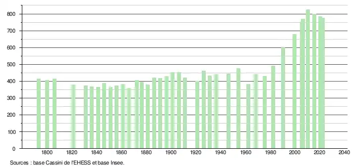 - ↑ Fiches Insee - Populations de référence de la commune pour les années 2006, 2007, 2008, 2009, 2010, 2011, 2012, 2013, 2014, 2015, 2016, 2017, 2018, 2019, 2020, 2021 et 2022.