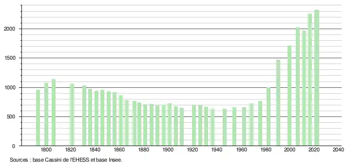 - ↑ Fiches Insee - Populations de référence de la commune pour les années 2006, 2007, 2008, 2009, 2010, 2011, 2012, 2013, 2014, 2015, 2016, 2017, 2018, 2019, 2020, 2021 et 2022.