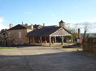 - ↑ Le monument est précisément situé entre la halle en bois, la ligne des anciens remparts et le chemin permettant d'accéder au château de Biron.