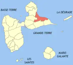 Par ailleurs la commune fait partie de l'aire d'attraction des Abymes, dont elle est une commune de la couronne[Note 2]. Cette aire, qui regroupe 18 communes, est catégorisée dans les aires de 200 000 à moins de 700 000 habitants[8],[9].