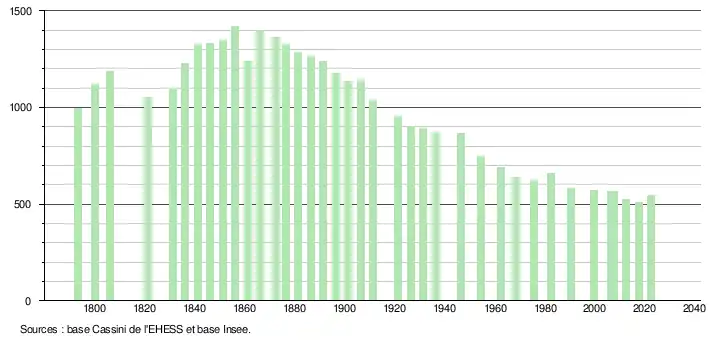 - ↑ Fiches Insee - Populations de référence de la commune pour les années 2006, 2007, 2008, 2009, 2010, 2011, 2012, 2013, 2014, 2015, 2016, 2017, 2018, 2019, 2020, 2021 et 2022.