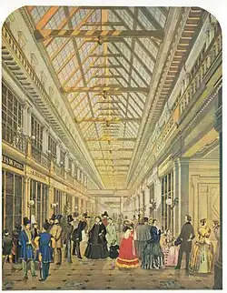 Inaugurée en 1848, elle est l'une des premières galeries commerciales modernes, la première de ce type étant le passage du Caire à Paris, ouvert en 1798. On trouve aussi à Londres la Burlington Arcade ouverte en 1818, puis la Galerie Vivienne à Paris en 1823 et à Bruxelles les Galeries Royales Saint-Hubert en 1847.