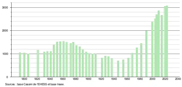- ↑ Fiches Insee - Populations de référence de la commune pour les années 2006, 2007, 2008, 2009, 2010, 2011, 2012, 2013, 2014, 2015, 2016, 2017, 2018, 2019, 2020, 2021 et 2022.