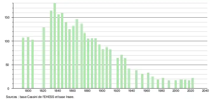 - ↑ Fiches Insee - Populations de référence de la commune pour les années 2006, 2007, 2008, 2009, 2010, 2011, 2012, 2013, 2014, 2015, 2016, 2017, 2018, 2019, 2020, 2021 et 2022.