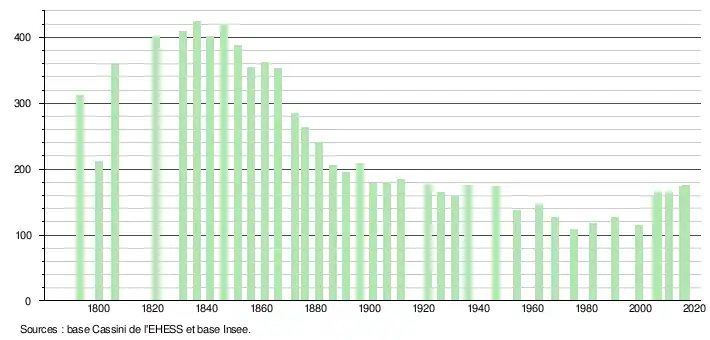 | Rang de la commune dans le département | 285 | 281 | 282 | 281 | 283 | 281 | 281 | 280 |