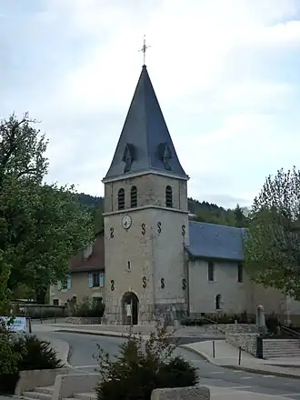 - L'église du Sappey date de 1115[18]. Le monument est remanié à deux reprises au XVIIe siècle et au milieu du XIXe siècle quand, avec l'aide des moines de la Grande Chartreuse, il reçoit sa forme actuelle, avec ses deux chapelles latérales et son clocher repris dans la partie supérieure. L'église abrite une cloche en bronze du XVIIe siècle (1665) classée Monuments Historiques, de note ut dièse et portant des inscriptions. Réalisation en 1955 d'un Christ émaillé polychrome de 2,40 m de hauteur par 1,50 m de l'artiste Georges Gimel, ainsi que d'un Chemin de Croix très moderne en ciment peint à la fresque et cloisonné. Les vitraux actuels sont de l'Arcabas.