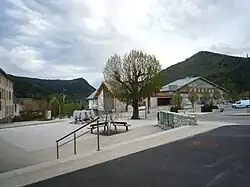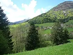 Le centre du village vu du nord/est, Saint-Eynard à gauche et l'Écoutoux à droite. | |||||