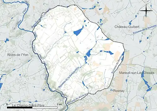 La commune est limitée à l'ouest par le cours de l'Yon, l'un des deux plus importants affluents du Lay, le principal fleuve côtier de Vendée.