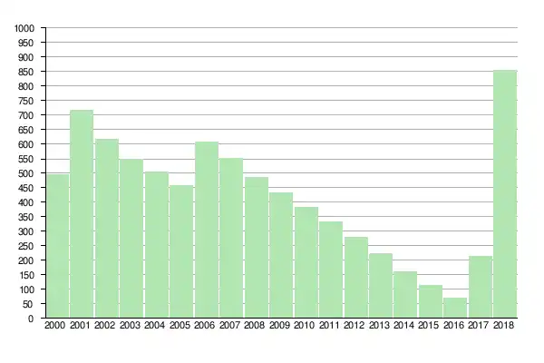 L'évolution du nombre d'habitants est connue à travers les recensements de la population effectués dans la commune depuis 1793. Pour les communes de moins de 10 000 habitants, une enquête de recensement portant sur toute la population est réalisée tous les cinq ans, les populations de référence des années intermédiaires étant quant à elles estimées par interpolation ou extrapolation[19]. Pour la commune, le premier recensement exhaustif entrant dans le cadre du nouveau dispositif a été réalisé en 2008[20].