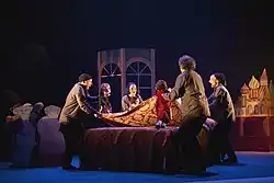 Le Théâtre du Sous-marin jaune est une compagnie québécoise dirigée par une marionnette, Loup Bleu, qui adapte depuis 1995 de grands classiques de la littérature sous forme de spectacle de marionnettes avec la technique du jeu à vue.