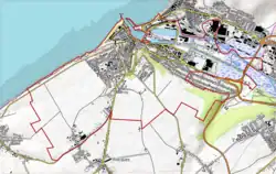 L'occupation des sols de la commune, telle qu'elle ressort de la base de données européenne d’occupation biophysique des sols Corine Land Cover (CLC), est marquée par l'importance des territoires agricoles (49,3 % en 2018), en diminution par rapport à 1990 (51,6 %). La répartition détaillée en 2018 est la suivante : terres arables (45,6 %), zones urbanisées (26,4 %), zones industrielles ou commerciales et réseaux de communication (14,1 %), espaces verts artificialisés, non agricoles (6,8 %), zones agricoles hétérogènes (2,8 %), forêts (2,7 %), prairies (0,9 %), zones humides côtières (0,6 %)[18]. L'évolution de l’occupation des sols de la commune et de ses infrastructures peut être observée sur les différentes représentations cartographiques du territoire : la carte de Cassini (XVIIIe siècle), la carte d'état-major (1820-1866) et les cartes ou photos aériennes de l'IGN pour la période actuelle (1950 à aujourd'hui)[Carte 2].