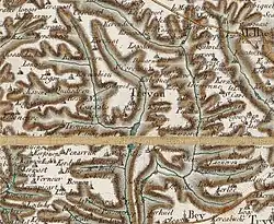 - ↑ Les ruisseaux intermittents sont représentés en traits pointillés.