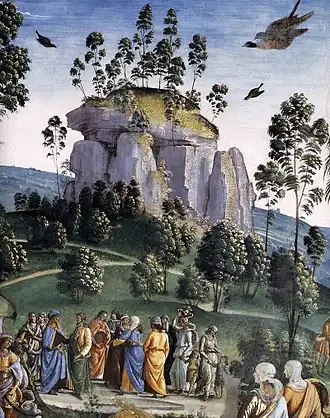 En 1480, Le Pérugin décorait à fresque une chapelle pour le compte du pape Sixte IV dans l'antique basilique vaticane, obtenant un tel succès qu'il obtint aussitôt la nouvelle commande pour la décoration de la nouvelle chapelle papale, appelée Sixtine par la suite en honneur du pape.
