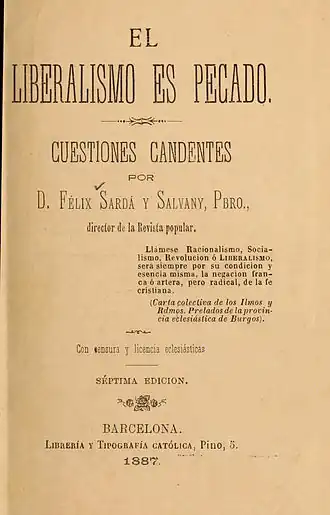 - (es) Félix Sardá y Salvany, El liberalismo es pecado, Barcelone, , 3e éd. (lire en ligne)