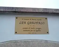 - Des plaques sont apposées à sa mémoire au cimetière de San Fruttuoso, à quelques pas du lieu où elle a été torturée et tuée[30],[31] et à Monza ; à Crotone par le Cercle des jeunes démocrates, en présence de sa sœur Marisa Garofalo[32]