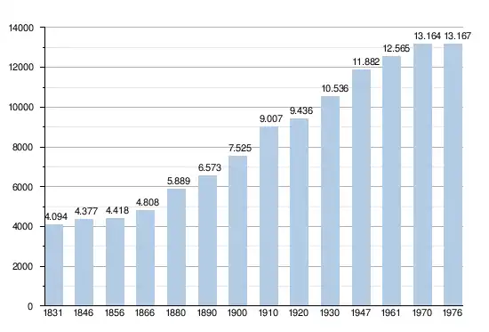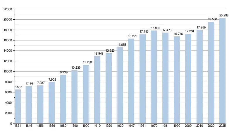 - Source : DGS - Remarque: 1831 jusqu'à 1981=recensement; depuis 1990=nombre d'habitants chaque 1er janvier[5]