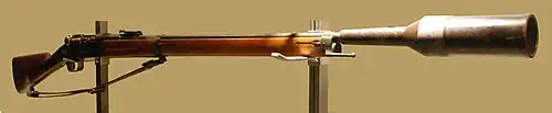 - l'adjonction d'un tampon masque sur la tête de culasse. Ce masque sert à éviter les crachements de gaz au visage du combattant. Un quillon est rajouté à l'embouchoir pour permettre la formation de faisceaux d'armes sans que la baïonnette soit installée.