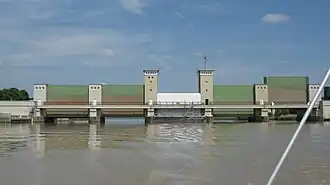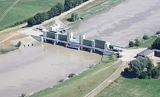 Il n'y a pas d'écluses sur la Leda, mais seulement un barrage mobile avec un pertuis pour le passage des navires. Ce barrage a été construit entre 1950 et 1954 comme ouvrage de protection contre les crues, et est entré en service en . Il comporte 5 vannes levantes de 14 m de largeur par 10,50 m de hauteur. Le pertuis de navigation occupe la partie centrale. Dès le mois de , ce barrage permit de réguler le niveau des eaux en amont en prévenant les effets d'une marée exceptionnelle.