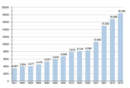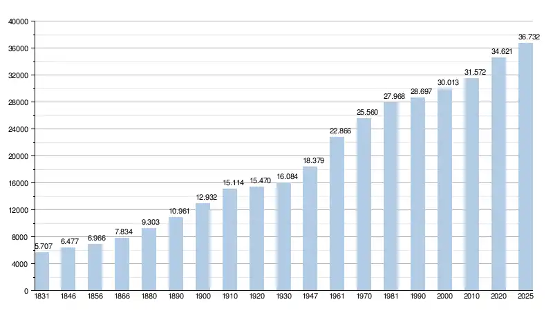 - Source: DGS , de 1831 à 1981=recensements population; à partir de 1990 = nombre d'habitants chaque 1 janvier[6]