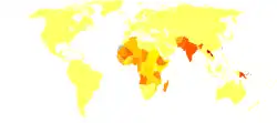 En 2023, l'OMS estime qu'entre 700 000 et 1 million de personnes sont nouvellement infectées chaque année[2].