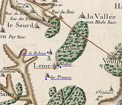La carte de Cassini ci-contre, montre qu'au XVIIIe siècle, Lemé est une paroisse. Trois hameaux, qui sont aujourd'hui reliés au village, sont représentés : au nord Rue de Bohain actuellement rue du Sourd, à l'est Boillot les Bouleaux de nos jours) et les Preaux au sud.