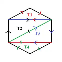 On explique dans le cas d'un polygone convexe, en passant par un découpage en triangles du polygone[2]. Si le polygone n'est pas un triangle, on joint un des sommets du polygone à un autre qui n'est pas un sommet voisin. On a ainsi défini deux nouveaux polygones de chaque côté du segment. On répète cette opération dans chacun des nouveaux polygones jusqu'à n'obtenir que des triangles. L'intégrale d'une fonction holomorphe étant nulle sur chaque triangle, la somme des intégrales sur les triangles est nulle, or cette somme (en prenant une orientation correcte du parcours de chaque triangle) est égale à l'intégrale de la fonction sur le contour du polygone, puisque chaque segment intérieur au polygone est parcouru une fois dans chaque sens, ce qui annule l'intégrale de la fonction sur ce segment.