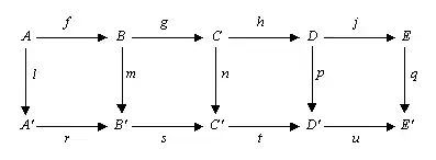 En algèbre homologique, le lemme des cinq permet d'établir l'injectivité et la surjectivité des flèches dans les diagrammes commutatifs.