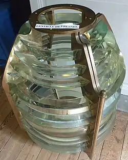 En , Augustin Fresnel alors membre de la Commission des phares, une institution d'État chargée de la gestion et de l'amélioration des phares français, soumet pour la première fois une étude de système dioptrique pour l'éclairage des phares[3]. Cette proposition fut alors remaniée et amenée plusieurs fois sur la table de la Commission. Le système, inspiré par les grandes lentilles utilisées dans le phare de Portland Bill, est proposé à nouveau le , composé de huit lentilles carrées assemblées en plusieurs morceaux, le tout collé sur des glaces par de la térébenthine de Venise ou assemblé en collant les bords avec de la colle de poisson, formant alors un prisme octogonal tournant[3],[4].