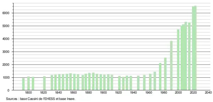 - ↑ Fiches Insee - Populations de référence de la commune pour les années 2006, 2007, 2008, 2009, 2010, 2011, 2012, 2013, 2014, 2015, 2016, 2017, 2018, 2019, 2020, 2021 et 2022.