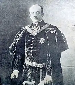 Ministre des affaires étrangères, il assume ses fonctions au début du conflit, notamment dans les négociations avec les États neutres voisins de la double monarchie. Durant les premiers mois du conflit, il parvient également à maintenir la Roumanie dans une attitude neutre, notamment par des manifestations symboliques de satisfaction du maintien de la neutralité[53], tandis qu'il se montre réceptif aux demandes territoriales de la Roumanie[54].