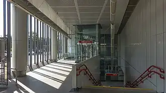 La station possède plusieurs accès équipés d'un escalier et d'un ascenseur pour l'accessibilité des personnes à la mobilité réduite[3].