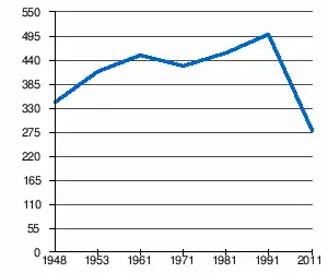 - 1 2 (sq) « Évolution de la population 1948-2011 », sur pop-stat.mashke.org (consulté le ).