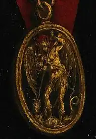 - chapitre 81 : « …un béret orné de l'ancienne médaille de l'Ordre de Saint-Michel, représentant l'Archange en train de terrasser le Dragon » (p. 485)