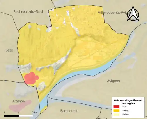 La commune est vulnérable au risque de mouvements de terrains constitué principalement du retrait-gonflement des sols argileux[22]. Cet aléa est susceptible d'engendrer des dommages importants aux bâtiments en cas d’alternance de périodes de sécheresse et de pluie. 87,6 % de la superficie communale est en aléa moyen ou fort (67,5 % au niveau départemental et 48,5 % au niveau national). Sur les 3 025 bâtiments dénombrés sur la commune en 2019, 2996 sont en aléa moyen ou fort, soit 99 %, à comparer aux 90 % au niveau départemental et 54 % au niveau national. Une cartographie de l'exposition du territoire national au retrait gonflement des sols argileux est disponible sur le site du BRGM[23],[Carte 2].