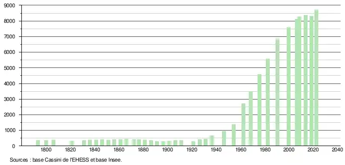 - ↑ Fiches Insee - Populations de référence de la commune pour les années 2006, 2007, 2008, 2009, 2010, 2011, 2012, 2013, 2014, 2015, 2016, 2017, 2018, 2019, 2020, 2021 et 2022.