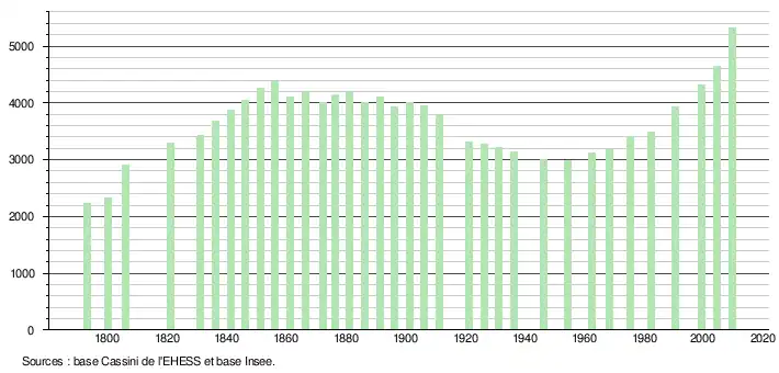L'évolution du nombre d'habitants est connue à travers les recensements de la population effectués dans la commune depuis 1793. À partir du , les populations légales des communes sont publiées annuellement dans le cadre d'un recensement qui repose désormais sur une collecte d'information annuelle, concernant successivement tous les territoires communaux au cours d'une période de cinq ans.