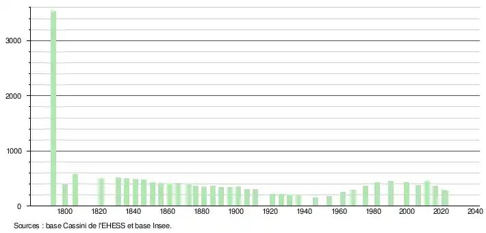 - ↑ Fiches Insee - Populations de référence de la commune pour les années 2006, 2007, 2008, 2009, 2010, 2011, 2012, 2013, 2014, 2015, 2016, 2017, 2018, 2019, 2020, 2021 et 2022.