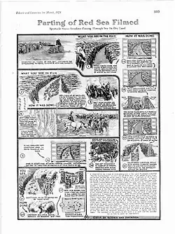 Des effets spéciaux originaux ont été utilisés. Les murailles d'eau de la Mer Rouge pour laisser le passage aux Hébreux sont réalisées de bandes de gélatine en mouvement[5].