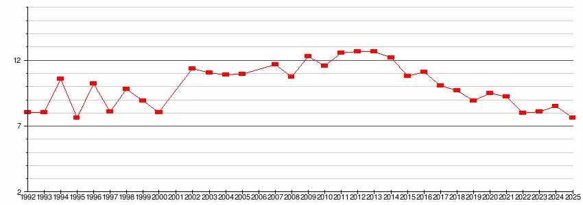 - 1 2 3 4 5 6 7 8 9 10 Plus une participation non créditée au générique, voir la note concernant l'année en italique dans le tableau.