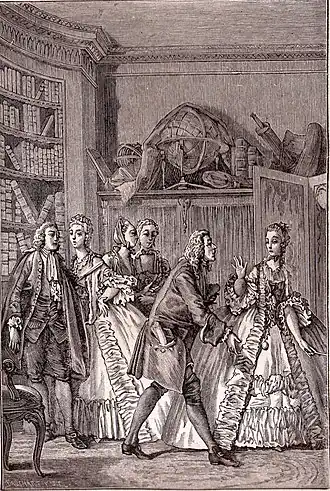 - ↑ Michel Pougeoise, Les Femmes savantes. Molière, Paris, Nathan, coll. "Balises", p. 90-91, (ISBN 9782091800561)