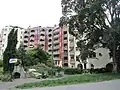 Le quartier des Grottes à Genève est caractérisé par une architecture alternative et unique, marquée par des constructions colorées et organiques. Notamment un ensemble d'immeubles résidentiels construits entre 1982 et 1984, surnommé « Les Schtroumpfs » car ils évoquent l’univers de ces personnages de Peyo[12]. Ce projet d'urbanisme vise à intégrer des espaces communautaires et piétonniers au cœur de la ville, favorisant une atmosphère de convivialité et de diversité.
