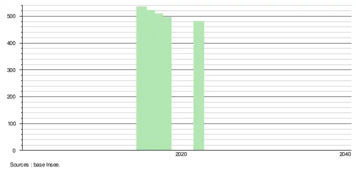 En 2022, la commune comptait 481 habitants[Note 3], en évolution de −8,03 % par rapport à 2016 (Yonne : −1,95 %, France hors Mayotte : +2,11 %).