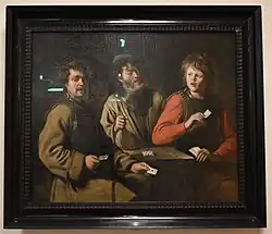 - (en)/(de)/(ne) Cet article est partiellement ou en totalité issu des articles intitulés en anglais « The Card Players » (voir la liste des auteurs), en allemand « Die Kartenspieler » (voir la liste des auteurs) et en népalais « De kaartspelers (Cézanne) » (voir la liste des auteurs).