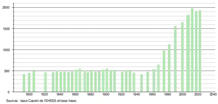 - ↑ Fiches Insee - Populations de référence de la commune pour les années 2006, 2007, 2008, 2009, 2010, 2011, 2012, 2013, 2014, 2015, 2016, 2017, 2018, 2019, 2020, 2021 et 2022.