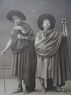 - ↑ Pascal Thiercy interprète ces deux noms respectivement par « fils du bel espoir » et « qui persuade ses compagnons ». P. Thiercy, « Les Oiseaux ou l'art du non-sens » in L'avant-scène théâtre, n° 1281, avril 2010, p. 63 (numéro consacré aux Oiseaux). Laetitia Bianchi recense aussi diverses autres traductions de ces deux noms : « Belespoir » ou « Espéron » (sic); Fidèle-Ami, Compagnon-Fidèle, Ralliecopain (chez Debidour) ou Copinon. (in Les Oiseaux, Arléa, 2024, p. 179 — v. Bibliographie).