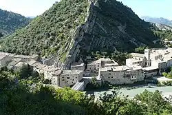 Le village est construit sur les rives de l'Eygues dans une cluse entre deux sites montagneux très proches l'un de l'autre. Il est un passage obligé pour relier les cols alpins et la vallée du Rhône[34]. Le chemin celtique devient la Voie Domitienne pour faire communiquer Arles avec Milan par Gap. Des restes de ses dalles sont trouvées lors de la construction de la route au XIXe siècle et lors de son goudronnage au XXe siècle[35].